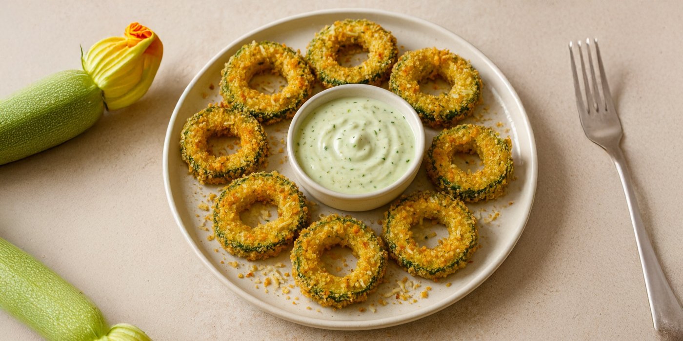Hledáte zdravější náhradu za chipsy, ale nechcete se ochudit o tu křupavou dobrotu? Tyhle cuketové kroužky s parmazánem zvládnete připravit za půl hodiny a zbytky přeměníte v krémový dip, po kterém se jen zapráší.