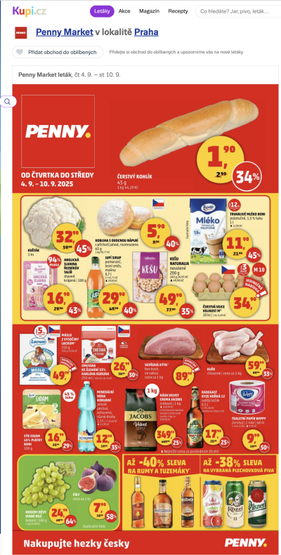 Rohlík. Jeden z nejběžnějších symbolů české kuchyně, který denně končí v košíku milionů zákazníků. A přesto se z něj stala rarita akčních letáků. PENNY jej nyní vyzdvihuje na titulní stranu a nabízí za cenu, kterou jsme naposledy viděli před více než rokem.
