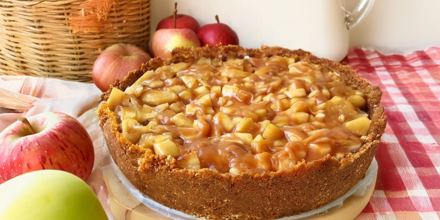 Cheesecake má původ až ve starověkém Řecku, kde ho prý připravovali sportovcům před olympiádou. Dnes ho najdete po celém světě a má nespočet variací. Tahle česká podzimní verze s jablky a karamelem spojuje domácí tradici se svěží lehkostí moderní cukrařiny. Líbí se mi, že se obejde bez pečení, takže i když nemáte troubu nebo nemáte čas, výsledek je naprosto dokonalý. A přitom působí slavnostně, takže ho klidně můžete dát na stůl k nedělní kávě i k narozeninám.