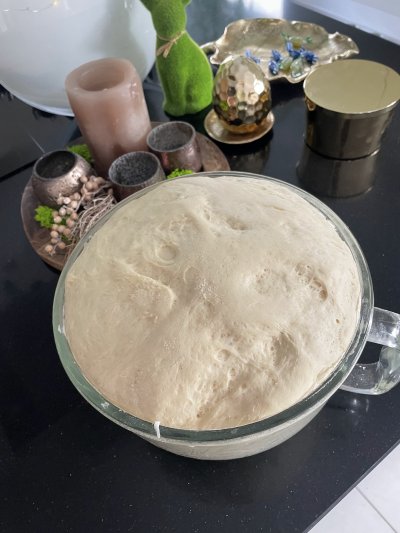 Těsto má být spíše řídké a lepivé, nepřidávejte zbytečně mouku navíc, pokud to není nezbytné. Bochánky nechte ideálně 24 hodin zrát v lednici přikryté fólií na plechu nebo uložené v uzavíratelné krabičce. Musí zde proběhnout proces fermentace.
