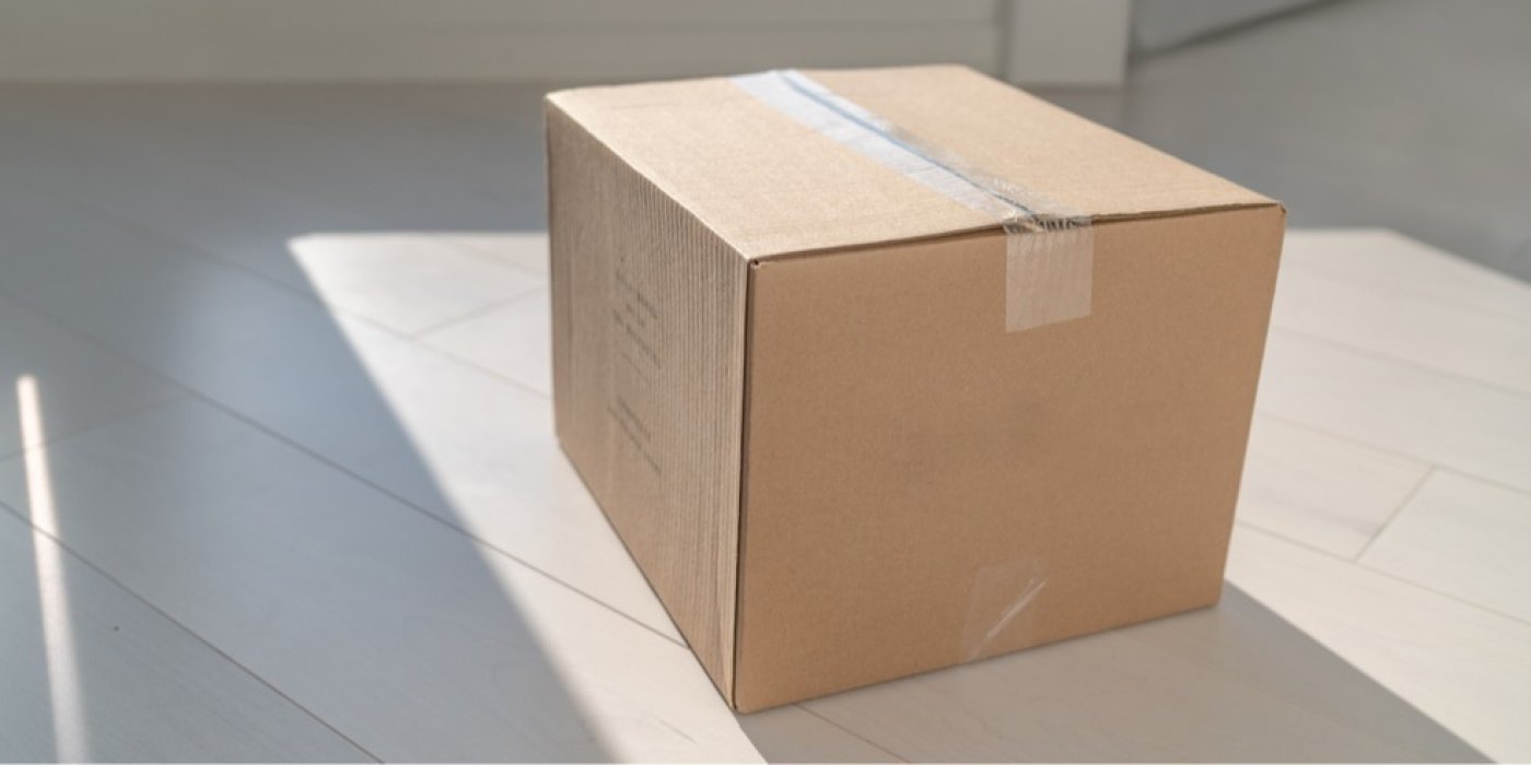 Zalepená kartonová krabice na podlaze Maridav / Shutterstock.com