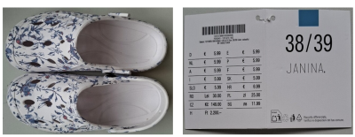 KiK Textil stahuje dámskou obuv s potiskem (Art. 1201473 P255043). Výrobek překračuje povolené množství látek s karcinogenními a mutagenními účinky.