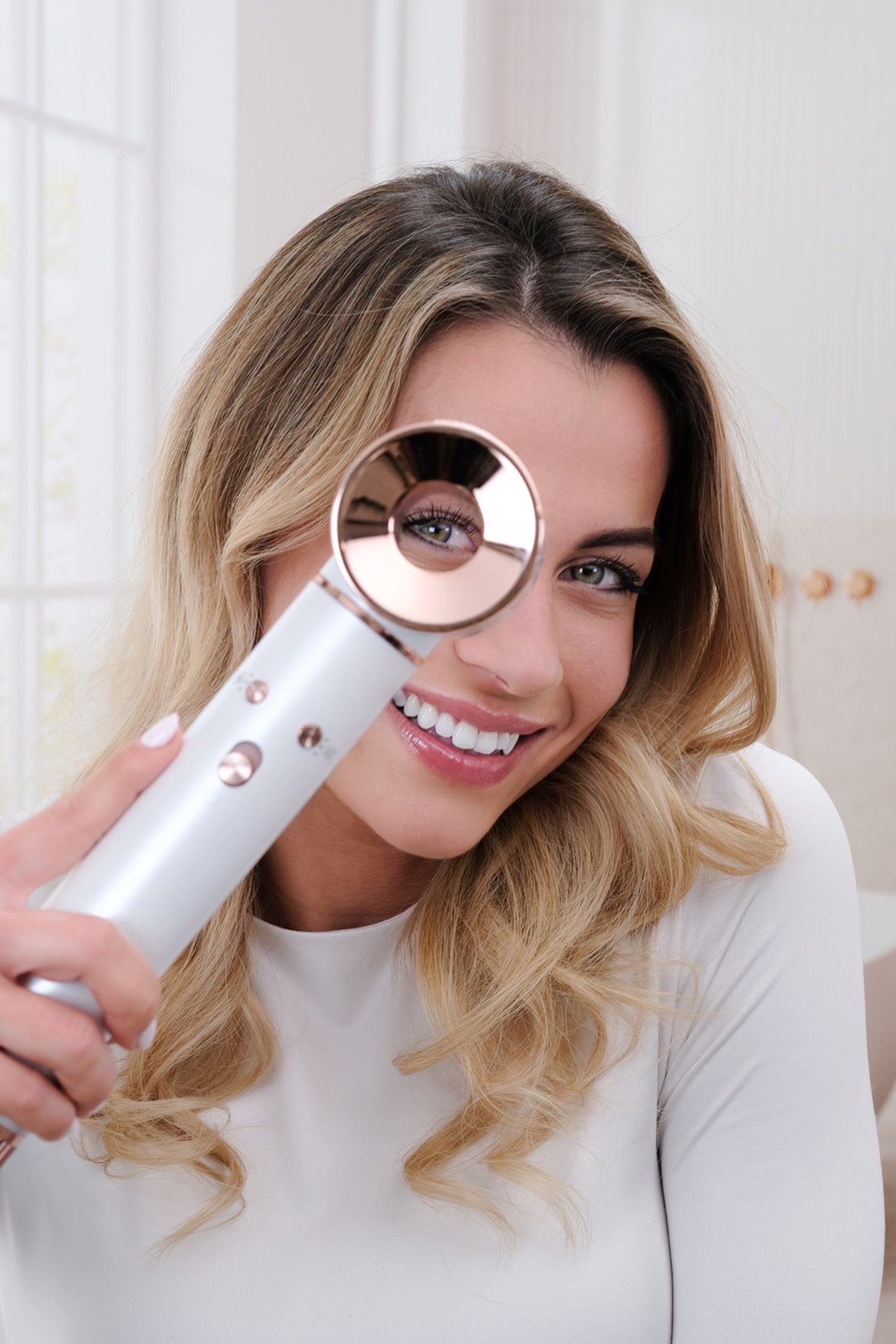 Klíčovou technologií je tzv. Coandův efekt, díky němuž se pramen vlasů sám přivine k nástavci a rovnoměrně natočí – v obou směrech, bez tahání a zbytečného přehřívání. Stačí pár vteřin horkého vzduchu, poté studený proud pro zafixování a vlny drží po celý den.