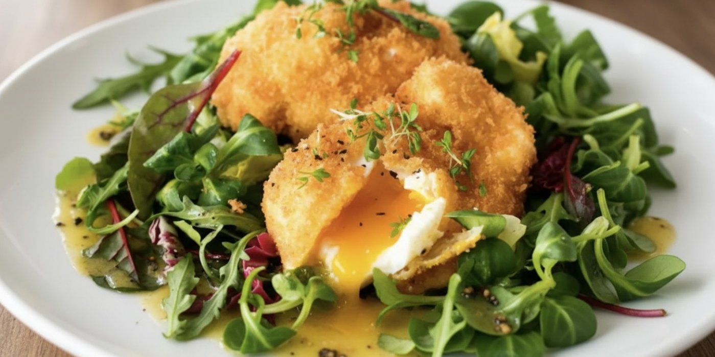 Smažená pošírovaná vejce se salátem – recept