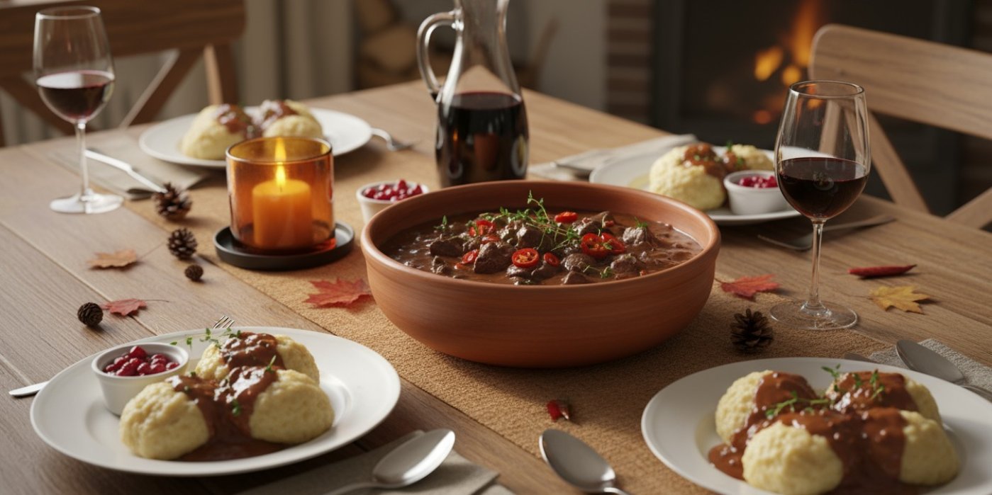 Jelení guláš je pro mě taková kuchyňská jistota, kterou vytahuju vždycky, když se v obchodech objeví zvěřinové maso v akcích. Ač to může znít složitě, není to žádná věda. Maso se dusí pomalu, víno se pomalu vyvařuje, chutě se propojí a výsledek stojí za čekání.
