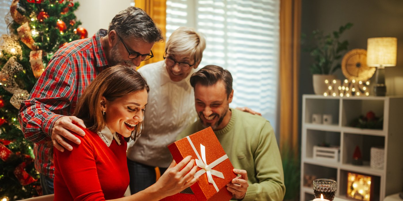 Rodina si rozbaluje u stromečku dárky Zamrznuti tonovi / Shutterstock.com