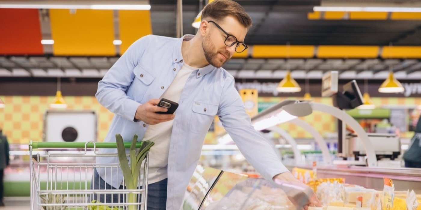 Muž nakupuje zboží z chladicího pultu Anatoliy Cherkas / Shutterstock.com