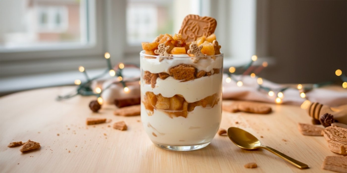 Po svátcích se většinou nechceme vzdát zimních chutí, ale zároveň už nemáme náladu na těžké zákusky plné cukru a dlouhé pečení. Tenhle skleničkový dezert je přesně někde mezi. Pečené jablko se skořicí, jemný skyr a perníčky připomenou Vánoce, ale v mnohem lehčí a civilnější podobě.