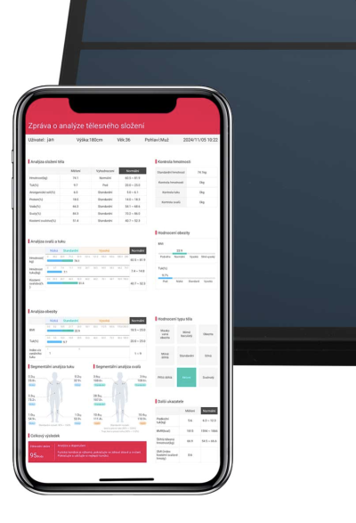 Při opakovaném měření byly výsledky stabilní a výkyvy minimální, zejména u svalové hmoty paží a trupu, kde běžné váhy měří pouze orientačně.