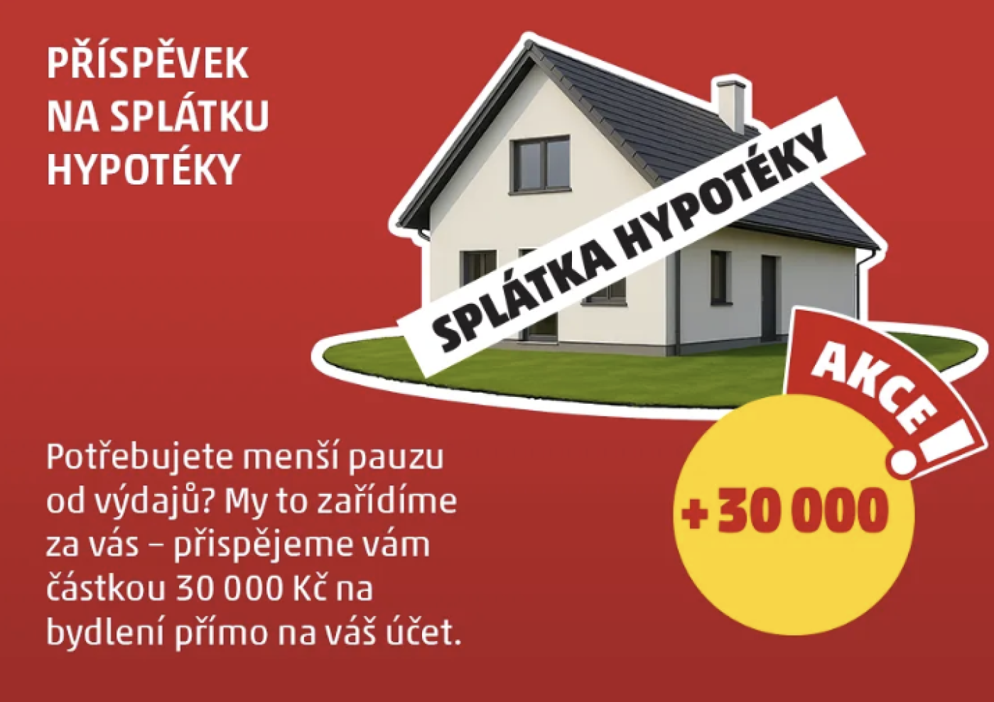 • 10× finanční příspěvek 30 000 Kč (propagovaný jako „příspěvek na splátku hypotéky“),