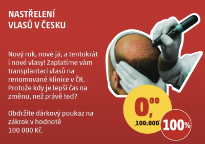 • 5× poukaz na transplantaci vlasů v hodnotě 100 000 Kč na pražské klinice CLINICAL