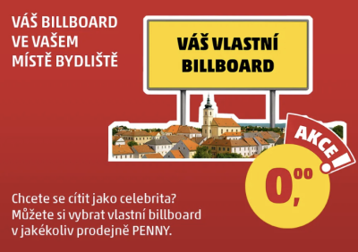 • 10× možnost umístit vlastní billboard na fasádu vybrané prodejny PENNY na 14 dní.
