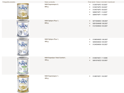 5. ledna 2026 přichází mnohem rozsáhlejší oznámení. Nestlé Česko na svých webových stránkách zveřejnilo, že stahuje 13 šarží sedmi různých produktů kojenecké výživy.