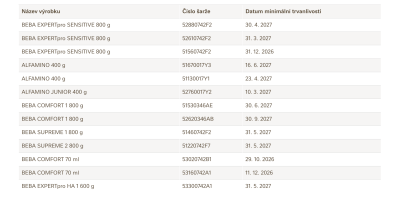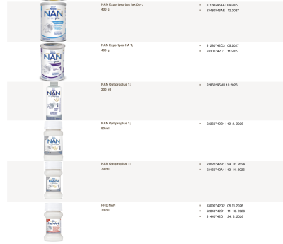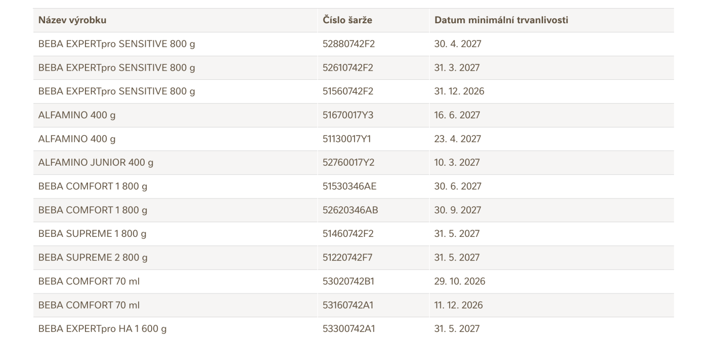 5. ledna 2026 vyšlo mnohem rozsáhlejší oznámení. Nestlé Česko na svých webových stránkách zveřejnilo, že stahuje 13 šarží sedmi různých produktů kojenecké výživy.