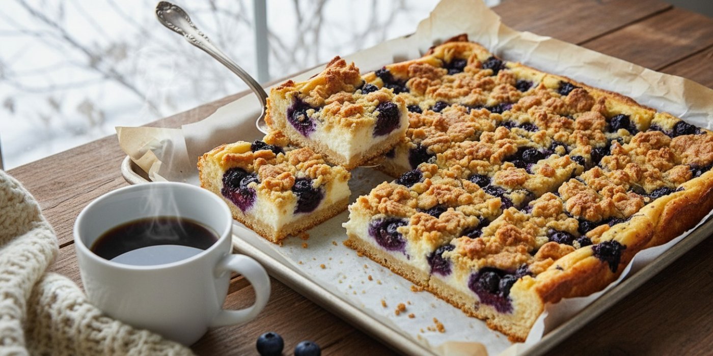 Borůvkový koláč s tvarohem patří k těm moučníkům, které dokážou proměnit šedý lednový den v malou chuťovou dovolenou. Tahle verze je lehčí než klasické kynuté varianty – rychlejší, jednodušší a překvapivě dostupná i uprostřed zimy, protože borůvky jsou dnes v supermarketech k dostání celoročně. Jemné jogurtové těsto, krémová tvarohová vrstva provoněná vanilkou, šťavnaté borůvky a na závěr křupavá drobenka, která celému koláči dodává tu pravou texturu. Za hodinu máte na stole moučník, který voní po létě, chutná jako prázdniny a zahřeje vás víc než horká čokoláda.
