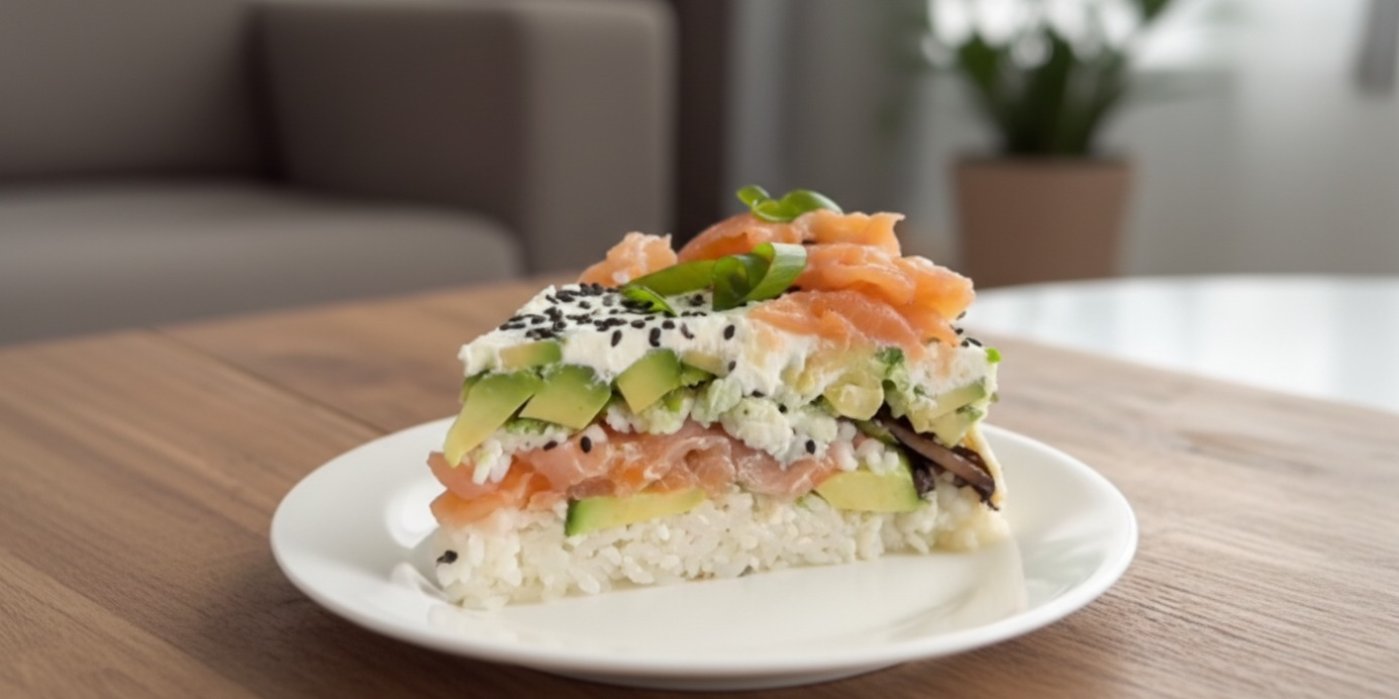 Sushi dort je ukázkou toho, jak se tradiční chutě dokážou přizpůsobit evropskému stylu stolování. Místo precizního rolování přichází vrstvení, místo bambusové podložky obyčejná dortová forma. Výsledek ale chutná překvapivě autenticky.