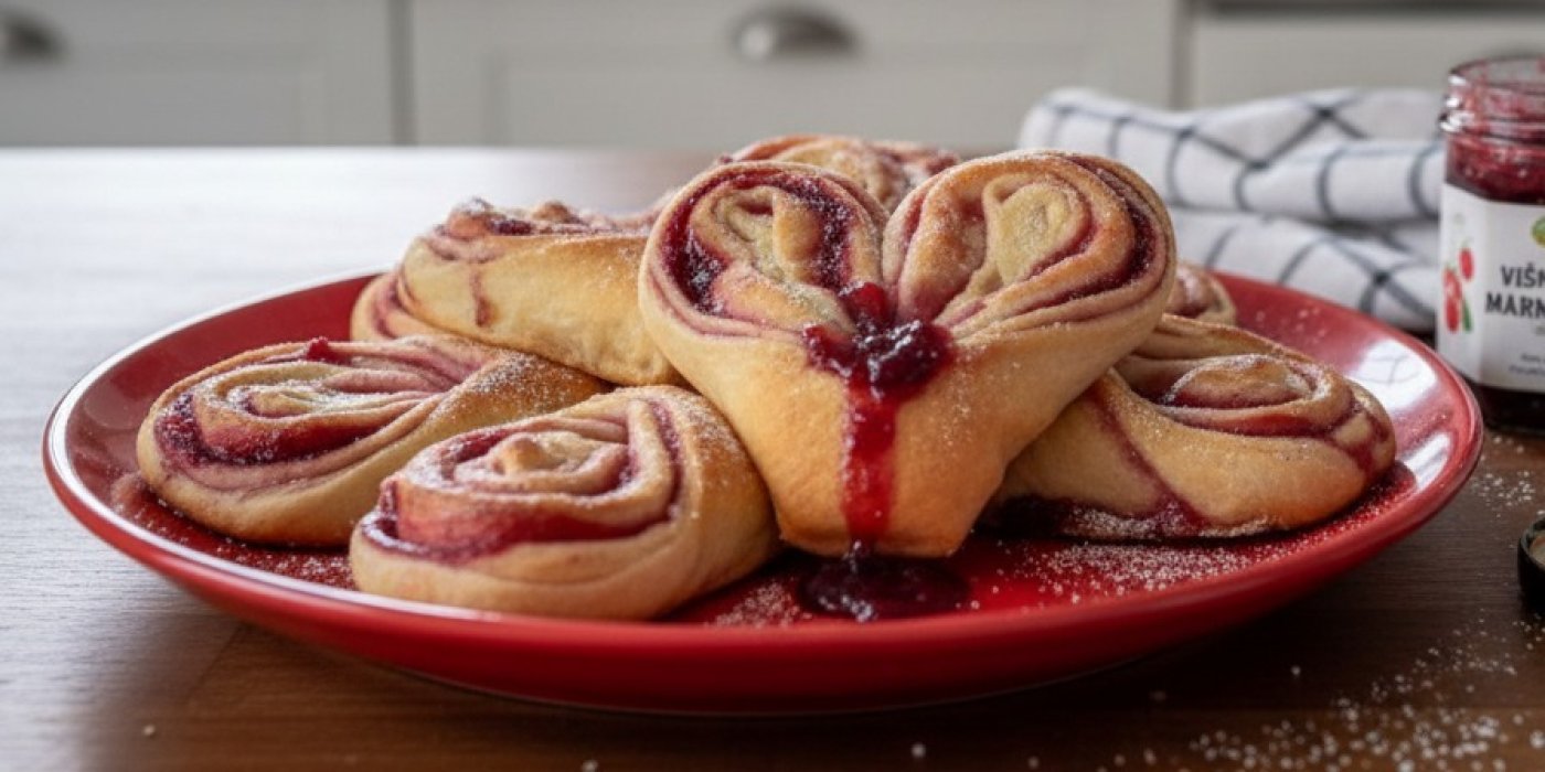 Valentýn nemusí znamenat drahé dezerty z cukrárny ani složité recepty plné stresu. Kynutá srdíčka plněná marmeládou jsou důkazem, že i z pár základních surovin lze vytvořit sladkost, která má emoci, vůni domova a efekt, jako byste v kuchyni strávili celé odpoledne. Jemné těsto, ovocná náplň a tvar, který mluví sám za sebe, z nich dělají ideální valentýnskou snídani, sladký dárek nebo dezert ke kávě. Recept je zvládnutelný i pro méně zkušené pekaře, ale výsledek působí slavnostně, osobně a promyšleně.