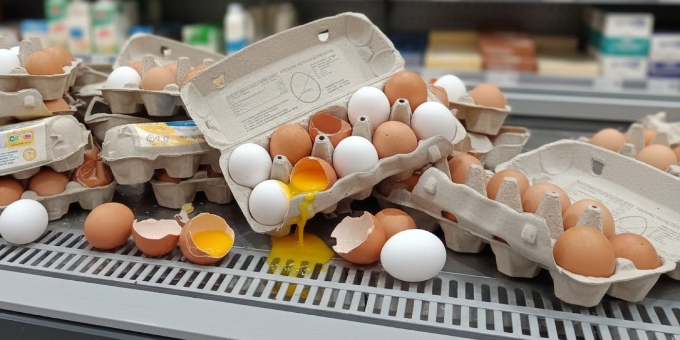 Petr stál u palety s vejci a nevěřícně se díval před sebe. Kartony byly promočené, vejce rozbitá a žloutky vyteklé po celé ploše. Místo akční nabídky ho čekal pohled, který ho znechutil natolik, že nákup vzdal. Tento příběh se skutečně stal a Petr se s ním svěřil redaktorce Kupi Magazínu, protože podle něj nejde o výjimku, ale o stále častější realitu.
