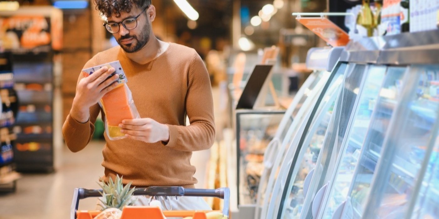Muž zkoumá lososa v obchodě Hryshchyshen Serhii / Shutterstock.com
