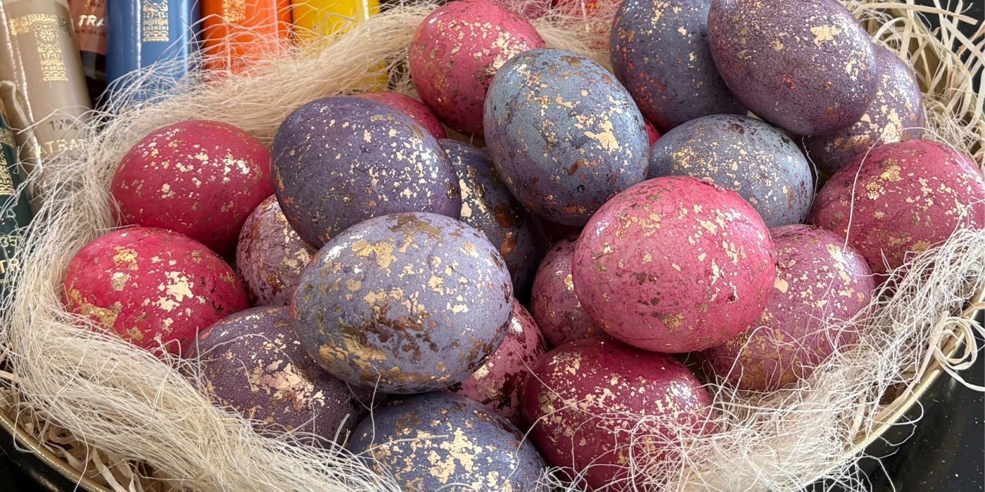 Nejlépe funguje kombinace tmavších barev, jako je fialová, modrá nebo vínová, se zlatými odlesky. Kontrast je výraznější a vajíčka díky tomu působí ještě elegantněji.