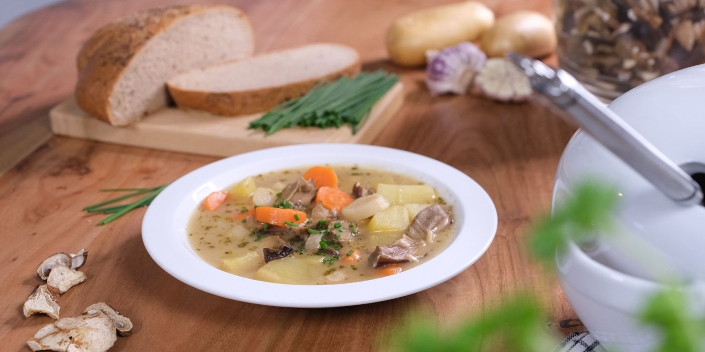 VIDEO: Hustá bramboračka se sušenými houbami, která zasytí a zahřeje