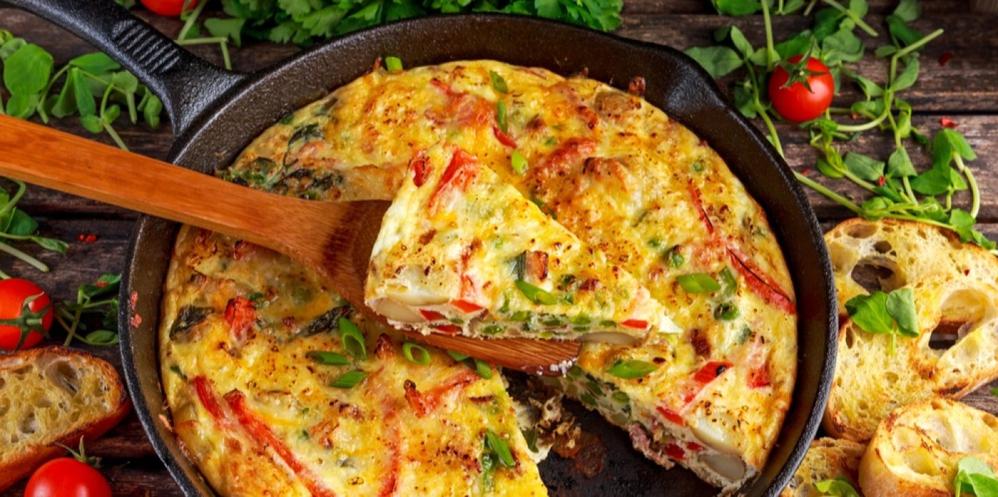 Vynikající vaječná omeleta na italský způsob: Přidává se k ní zelenina, dělá se pod pokličkou a je za chvíli hotová