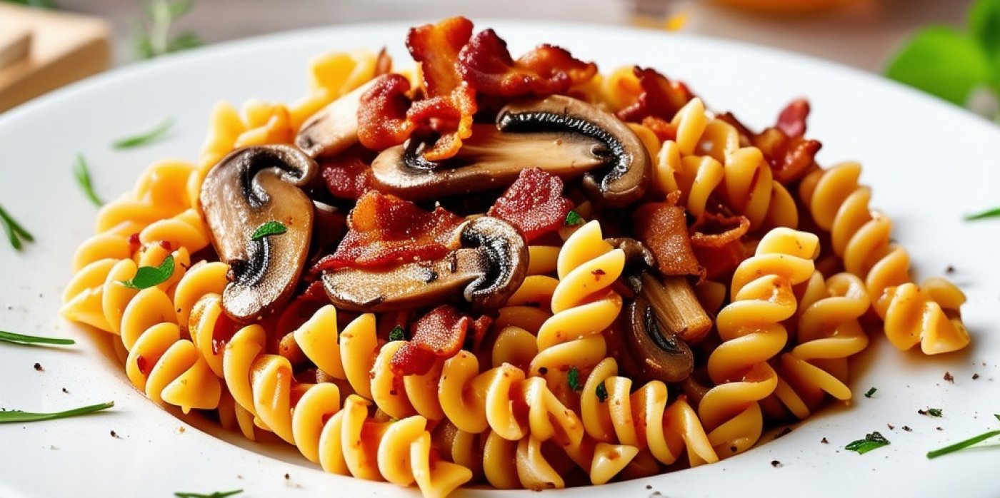 Vynikající těstoviny podle receptu známého italského kuchaře: Ochutnejte je s nevšední omáčkou z vína, klobásy a hub