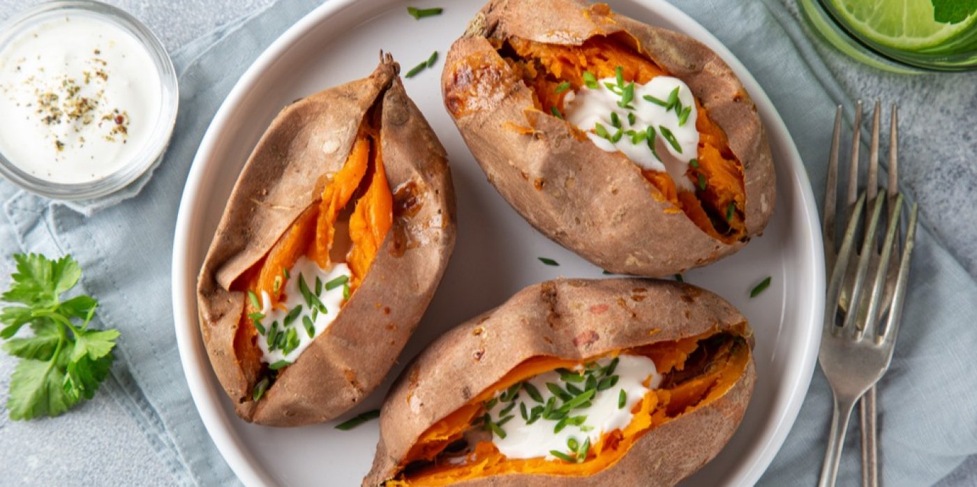 Zapomeňte na klasické brambory: Recept na pečené batáty s pikantním jogurtovým dipem, které budou chutnat celé rodině