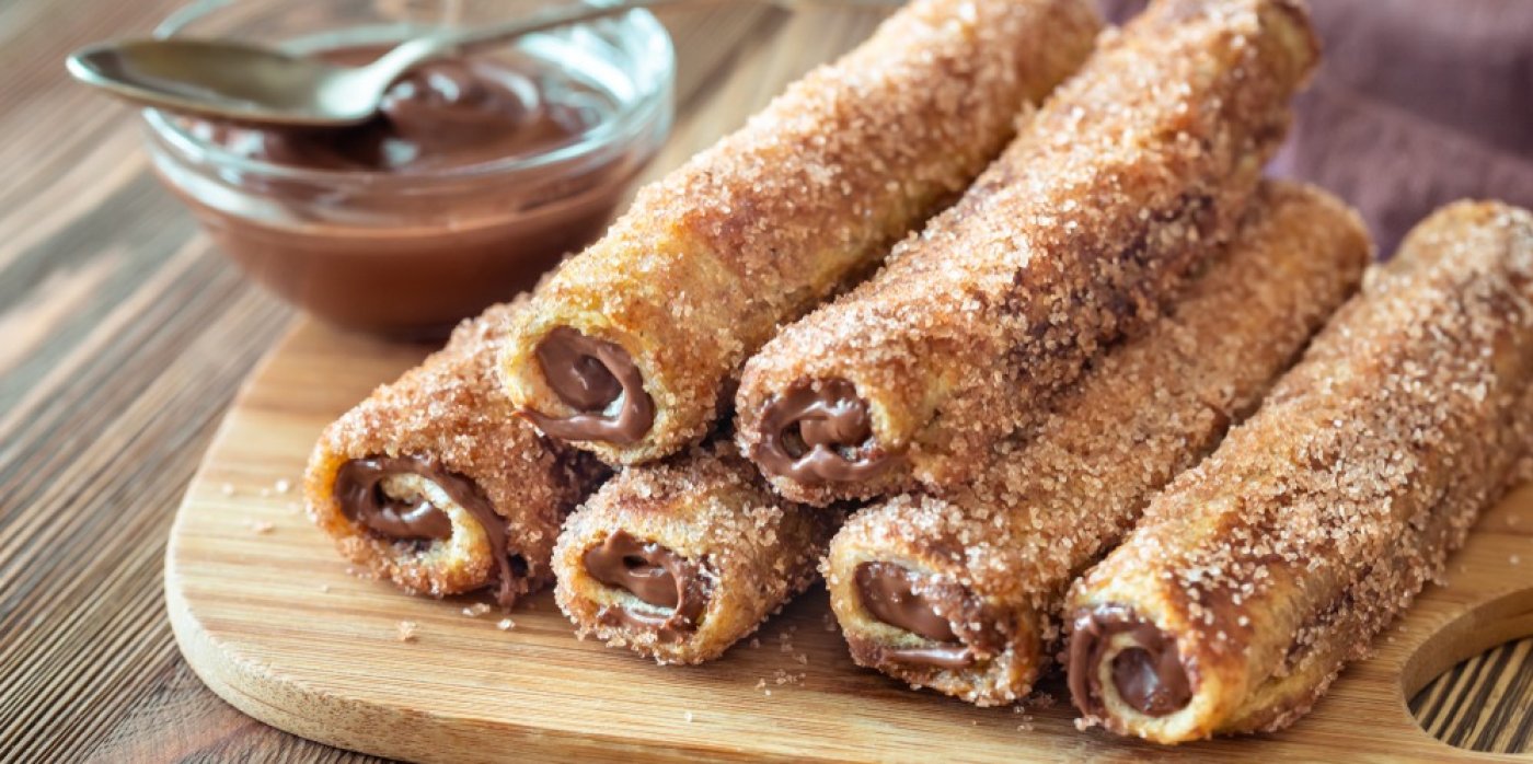 Smažené rolky z toustového chleba s Nutellou obalené ve skořicové krustičce