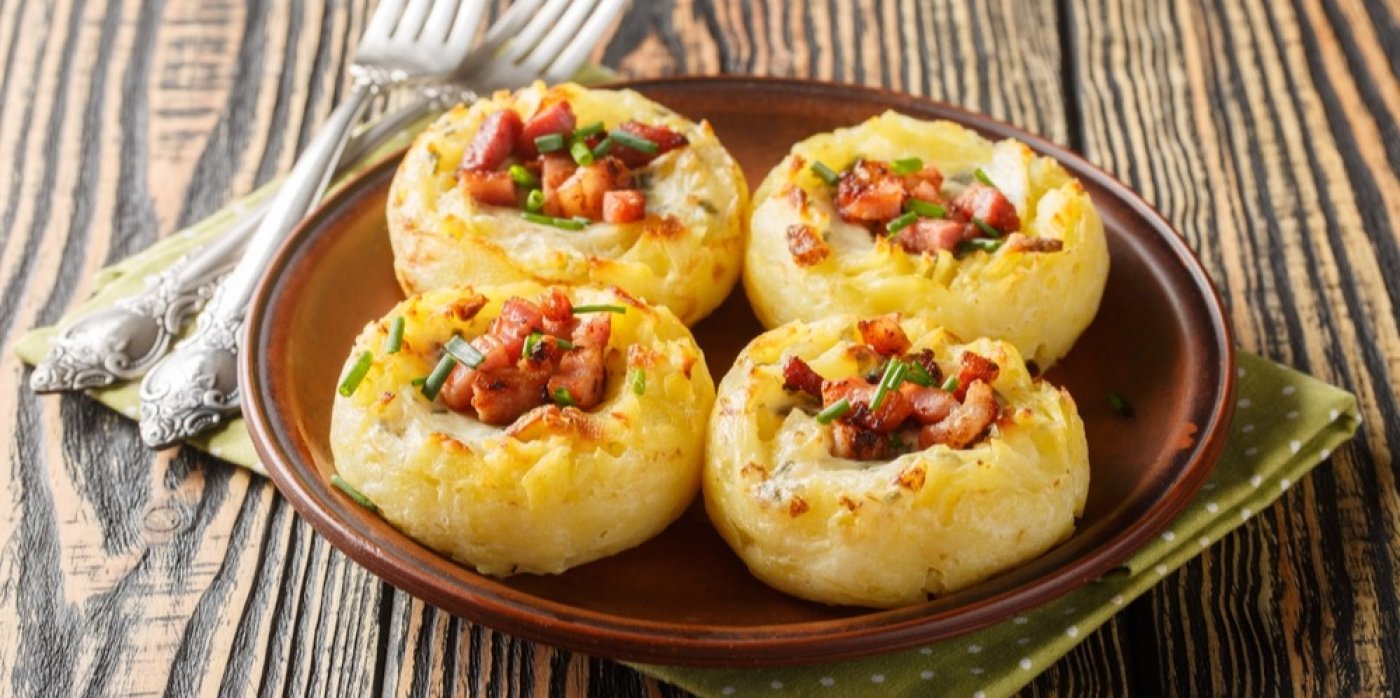 Vaření ze zbytků: Zapečená hnízda z bramborové kaše s vejcem a slaninou