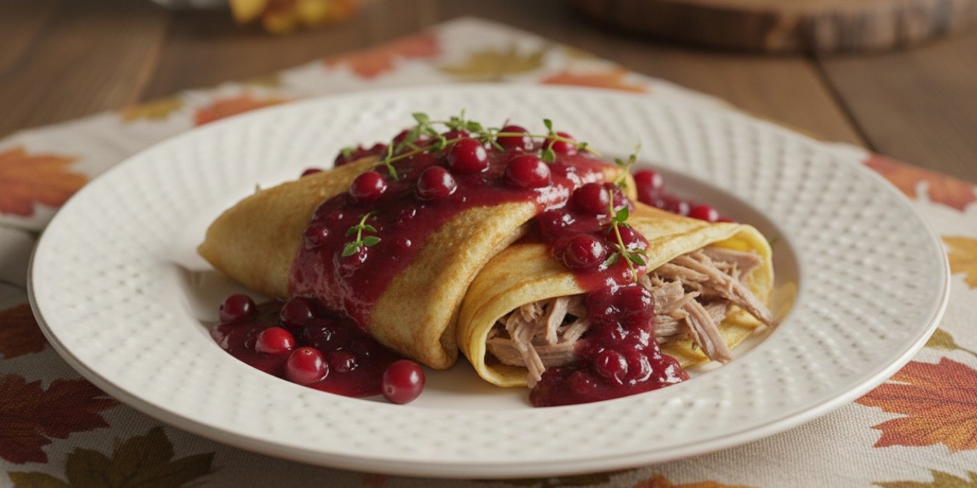 Slané palačinky s husím masem, brusinkovým krémem a portským vínem