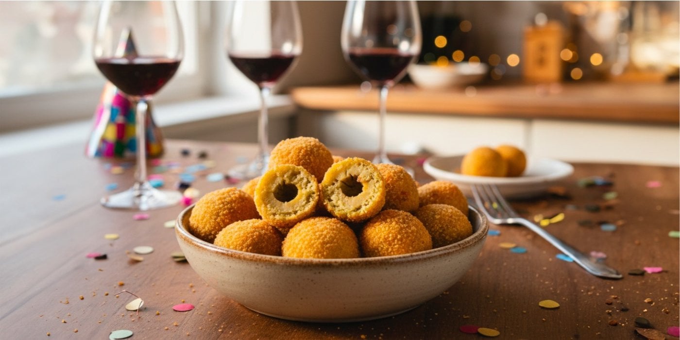 Křupavé smažené olivy v trojobalu hotové za pár minut. Ideální snack k vínu i pivu na silvestrovské oslavě