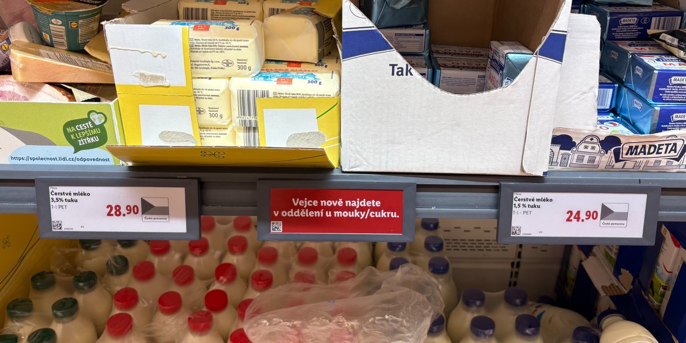 Lidl přestal prodávat vejce v chladicích regálech. Nově je najdete mezi moukou a mlékem. Lidem se to moc nelíbí