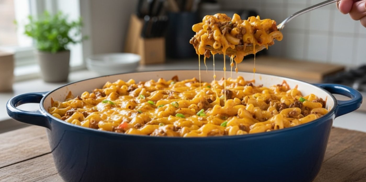 Zapečené těstoviny à la cheeseburger: Domácí hit z jednoho hrnce, který chutná jako z fastfoodu
