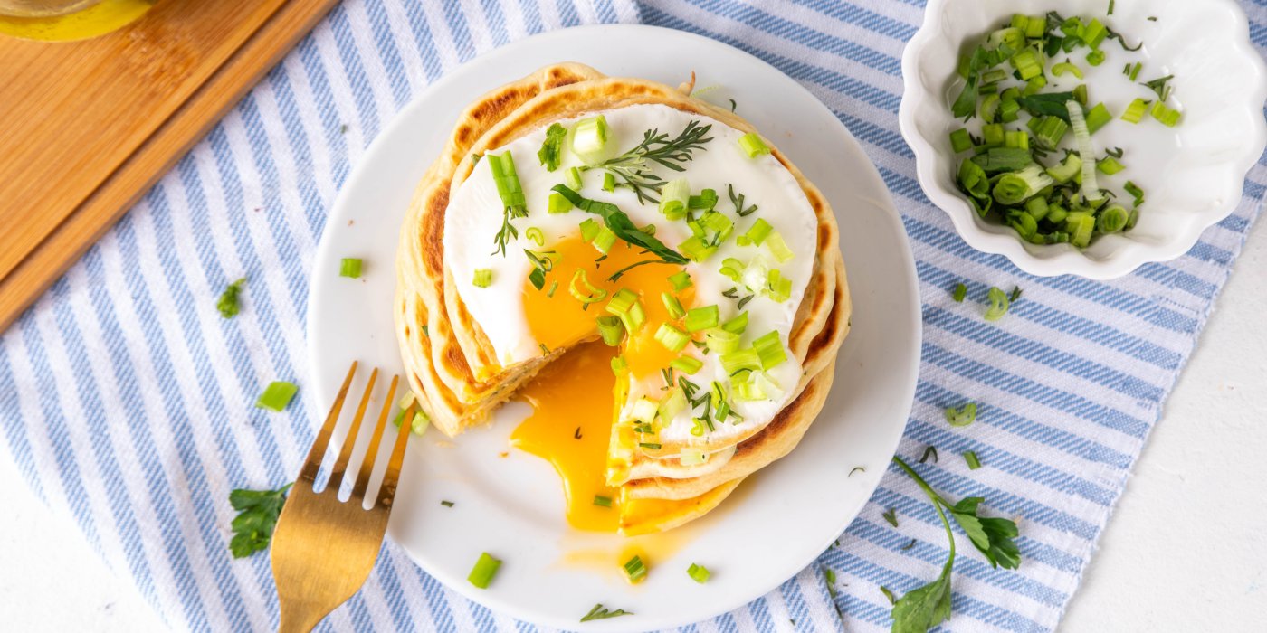 Snídaně, kterou si teď všichni ukládají: Slané palačinky s vejcem a jarní cibulkou