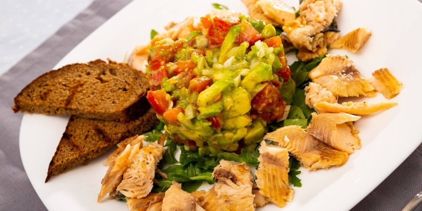 Grilovaný pstruh s avokádovým salátem a chlebem: Lehké jídlo, které zasytí bez pocitu těžkosti