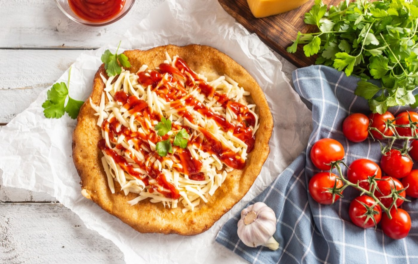 Maďarské langoše zná skoro každý jako křupavé placky dochucené česnekem, kečupem a strouhaným sýrem. Tyhle langoše jsou výborné a hlavně nejsou mastné, díky jogurtu nenasají tolik oleje.