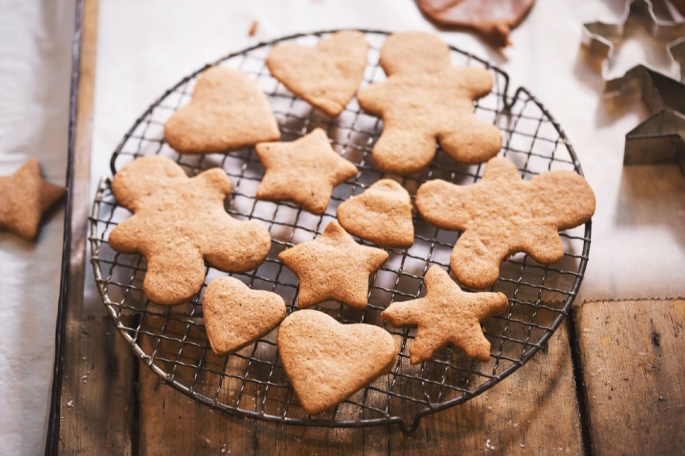 Vykrajované perníčky pak umístíme na plech vystlaný pečicím papírem a potřeme žloutkem s mandlovým mlékem.