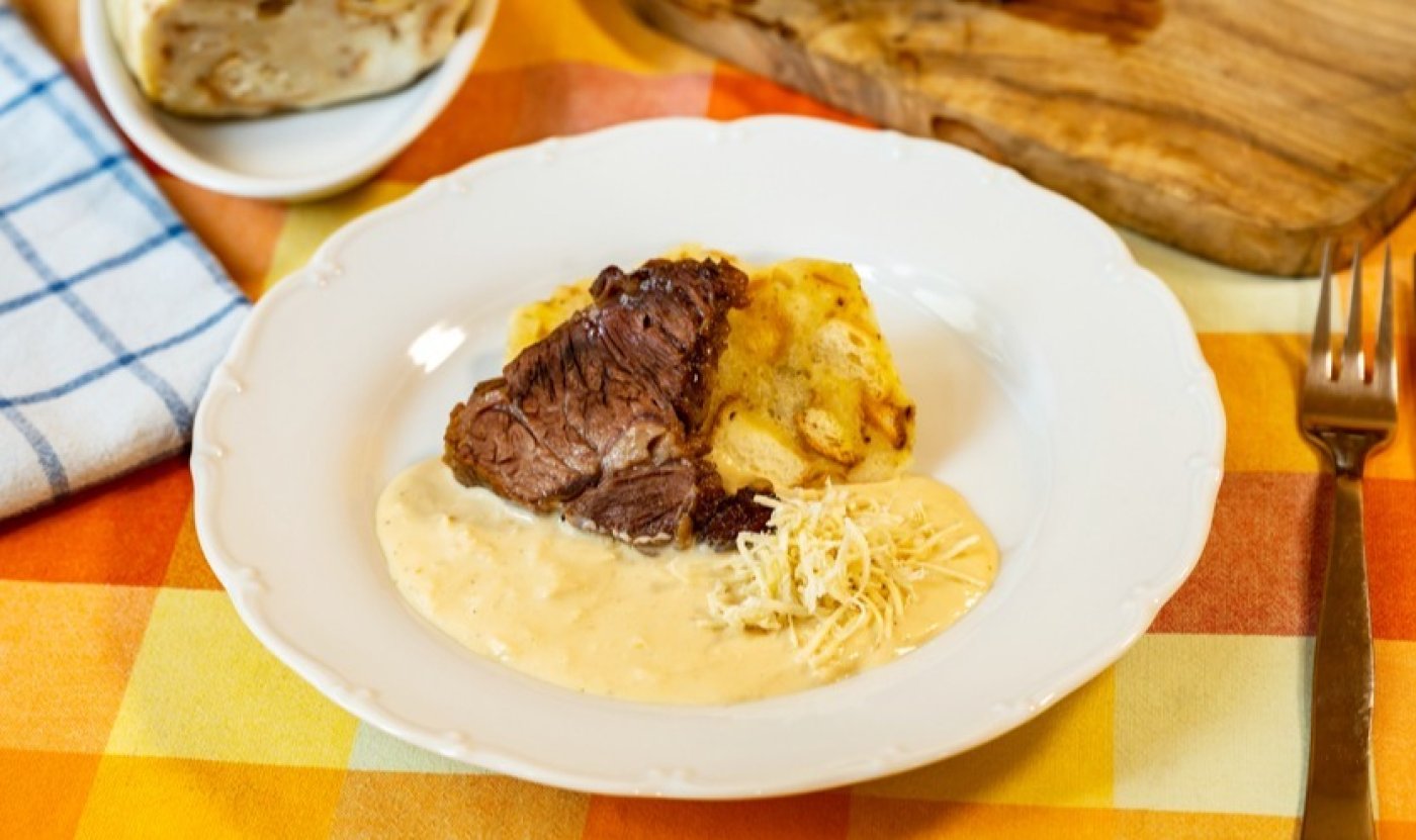 Omáčku vypněte, přidejte nastrouhaný čerstvý křen (120 - 200 g) podle chuti. Křenovou omáčku podávejte s houskovým knedlíkem a uzeným masem.