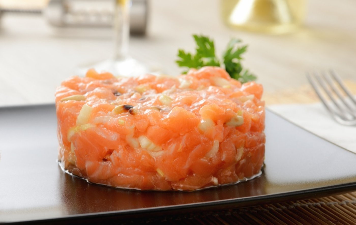 Tatarák z lososa poslouží jako luxusní předkrm i super rychlá večeře. Syrový losos má totiž velmi jemnou chuť, která skvěle vynikne v kombinaci s koprem a citronem.
