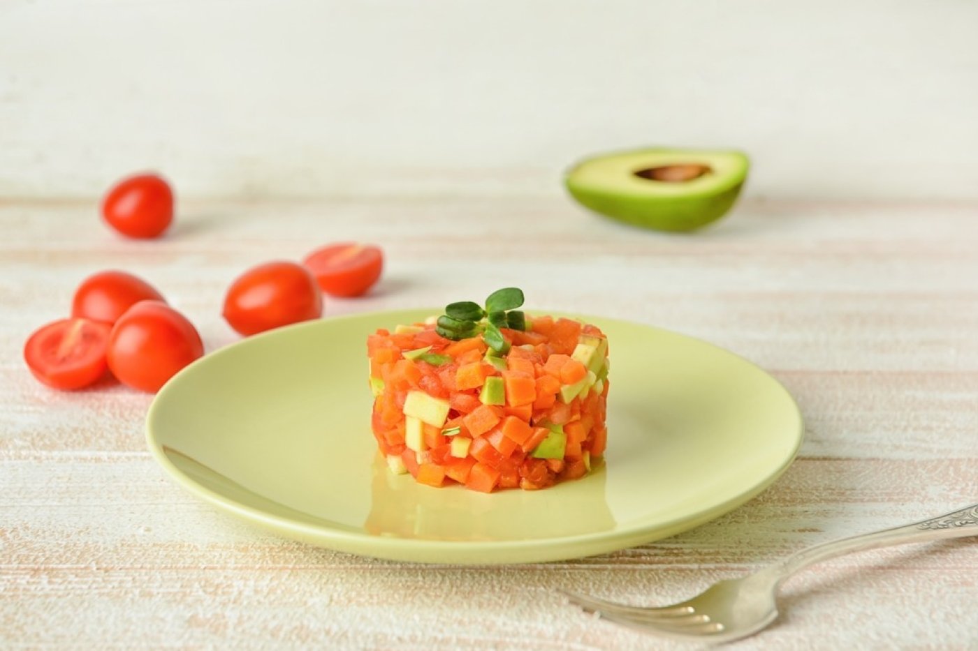 Zeleninový tatarák podávejte jen tak, případně na klasických topinkách potřených česnekem nebo na opečeném toustovém chlebu.