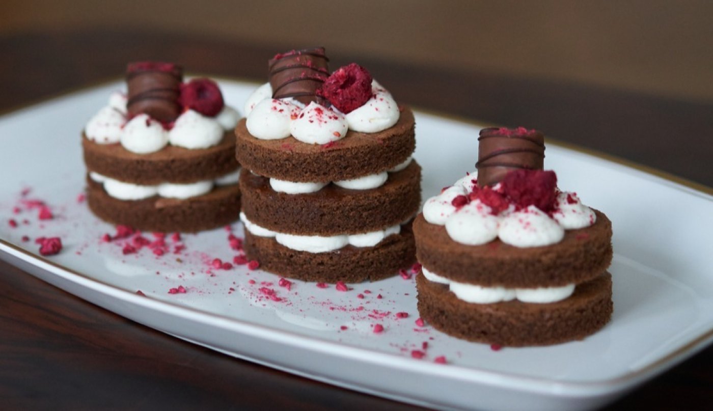 Nechte ztuhnout v ledničce a poté můžete servírovat a ozdobit třeba malinami a kakaem.