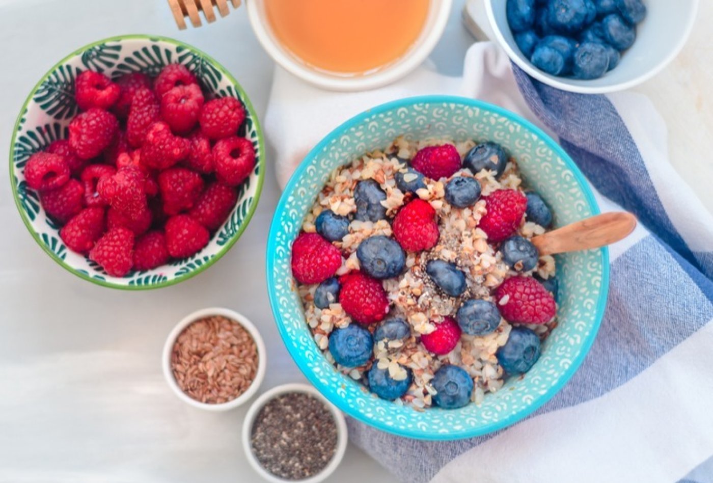 Pohanková kaše s lesním ovocem v medu a se smaženým listovým těstem se skořicí vám zaručeně nastartuje den. Pohanka je tradiční česká surovina, která si zaslouží pozornost. Je totiž opravdu zdravá a pro přípravu snídaňové kaše se hodí báječně.