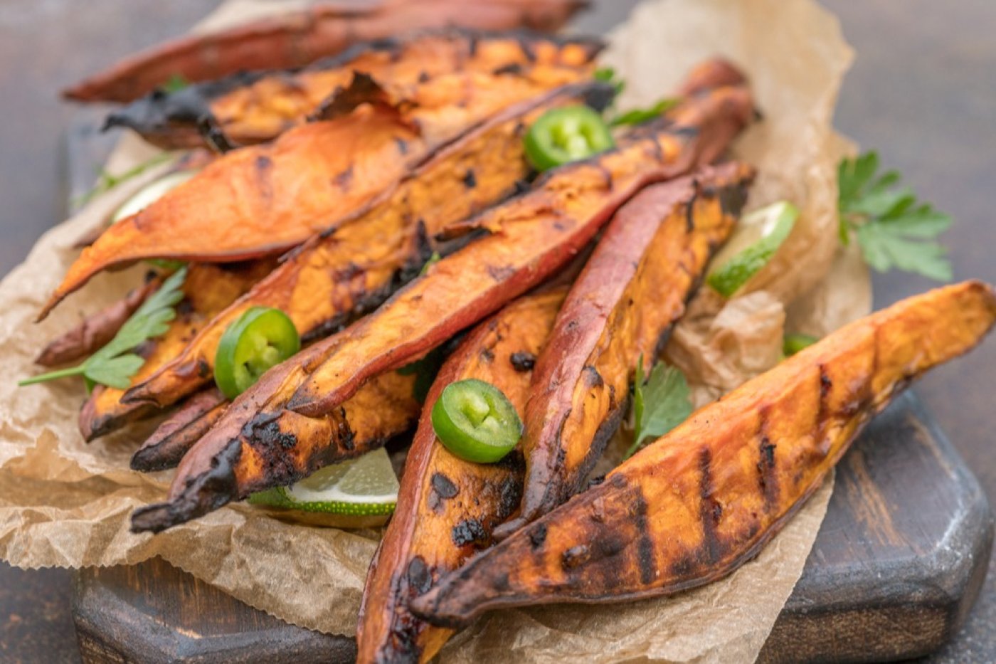 Grilované batátové měsíčky jsou nevšední alternativou klasických brambor. Jejich příprava je jednoduchá a pochutnají si nich malí i velcí gurmáni.