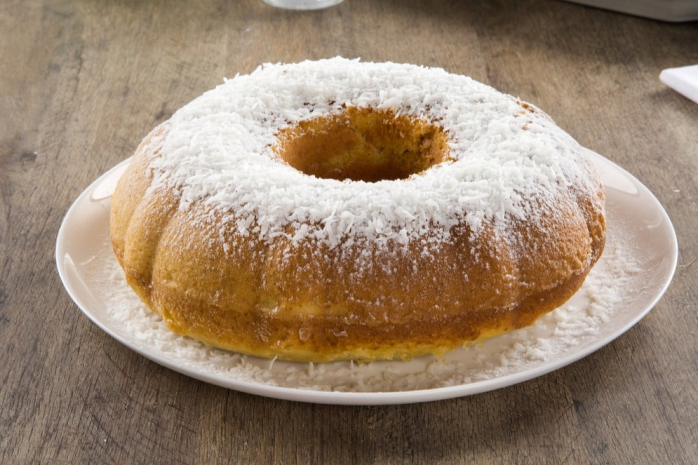 Upečenou kokosovou bábovku necháme trochu vychladnout, teprve poté opatrně vyklopíme z formy a dle chuti posypeme strouhaným kokosem nebo pocukrujeme moučkovým cukrem.