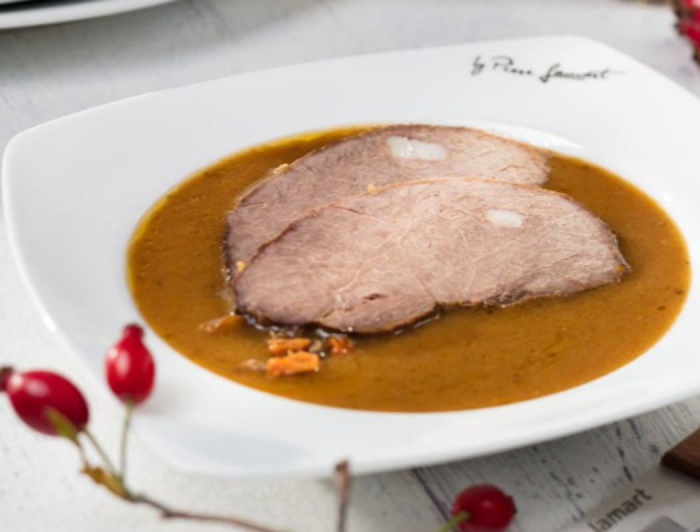 Kančí kýta se šípkovou omáčkou je vynikající pokrm, který se skvěle hodí jako slavnostnější oběd nebo večeře. Příprava sice zabere víc času, famózní výsledek však stojí za to. Podáváme ideálně s karlovarským, případně houskovým knedlíkem.