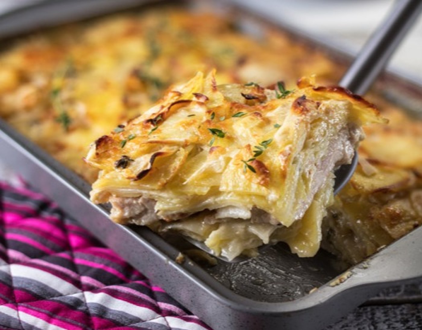 Vykostěná kuřecí stehna zapečená v celerových bramborách jsou naprosto vynikající pokrm, který si snadno připravíte z jednoho pekáčku. Kuřecí maso se s bramborami, celerem, nivou a smetanou skvěle doplňuje, není tak pochyb o tom, že si toto jídlo zamilujete.