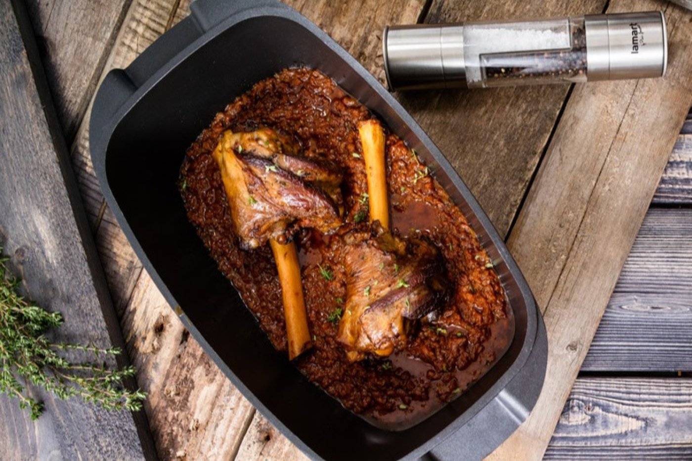Na jehněčím kolínku dušeném na zelenině a červeném víně si zajisté pochutnáte. Příprava se může zdát na první pohled trochu náročnější, ale věřte, že vše krásně zvládnete. S tímto pokrmem zajisté potěšíte i ty nejnáročnější strávníky.