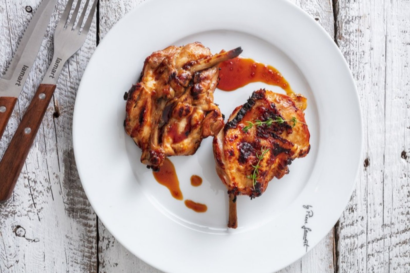 Zbylou marinádu krátce povařte na sporáku, stáhněte a nechte v ní rozpustit máslo. Připravenou omáčkou přelijte upečená stehna a dejte je ještě 5 minut zapéct.