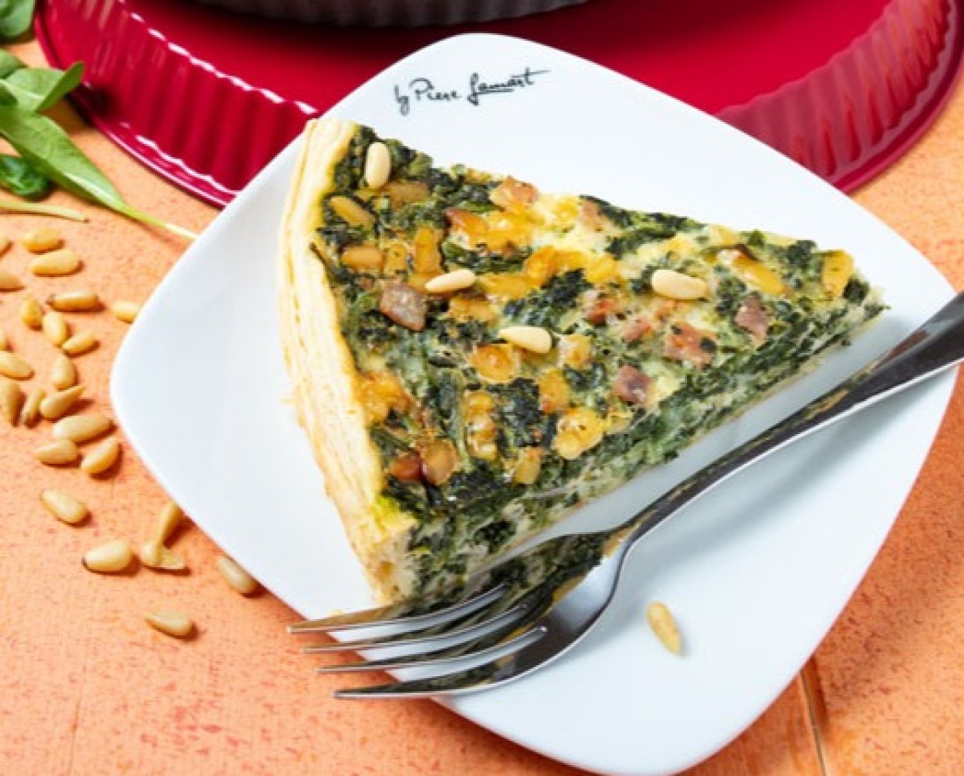Slaný koláč se špenátem a piniovými ořechy je opravdová lahůdka. Pokud navíc použijete již rozválené listové těsto namotané na pečicím papíru, budete mít koláč hotový během chvilky. Ideálně se tedy hodí jako rychlá večeře, když není času nazbyt, případně jako občerstvení pro nečekanou návštěvu.